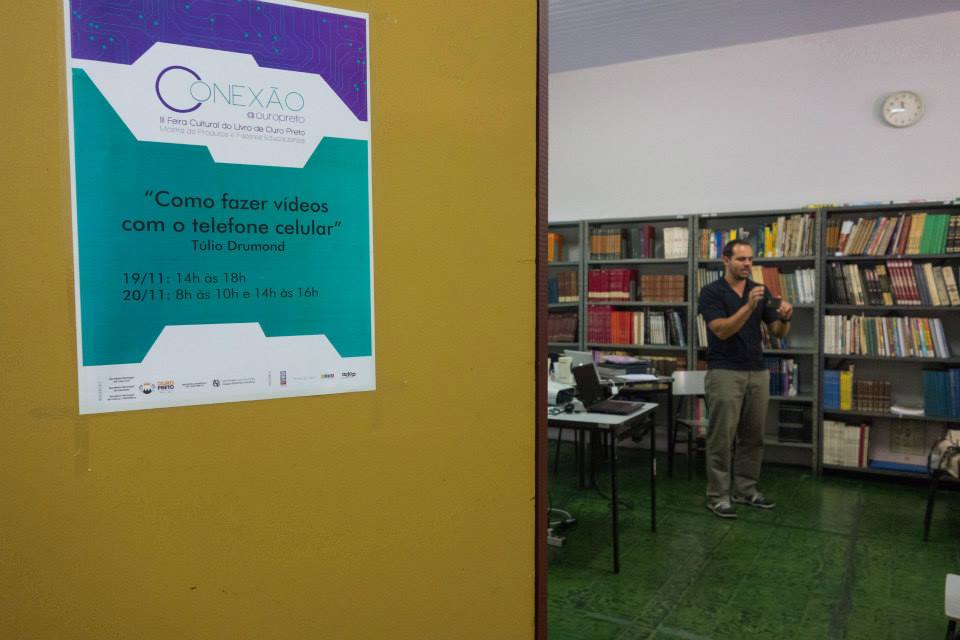 Recebi o convite do curador do evento, João Alegria, para ministrar um mini-curso durante a III Feira Cultural do Livro de Ouro Preto e sua Mostra de Produtos e Fazeres Educacionais, onde a temática da oficina seria vídeos feitos com telefones celulares. O objetivo do curso era preparar os professores da rede municipal para terem nessa ferramenta um apoio didático em suas disciplinas.